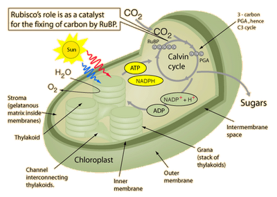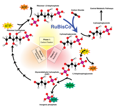 Lugar de la RuBisCo en el ciclo de Calvin (Click para ampliar)