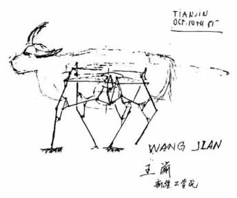 Hoy traigo dos diseños de lo que podría considerarse «robótica prehistórica«. El primero está poco documentado, pero se supone fue diseñado por un artista chino llamado Wang Jian (847-918) que en pleno siglo IX esbozó este «búfalo robótico» que transformaría el giro de una rueda central en el movimiento alternante de las cuatro patas:
