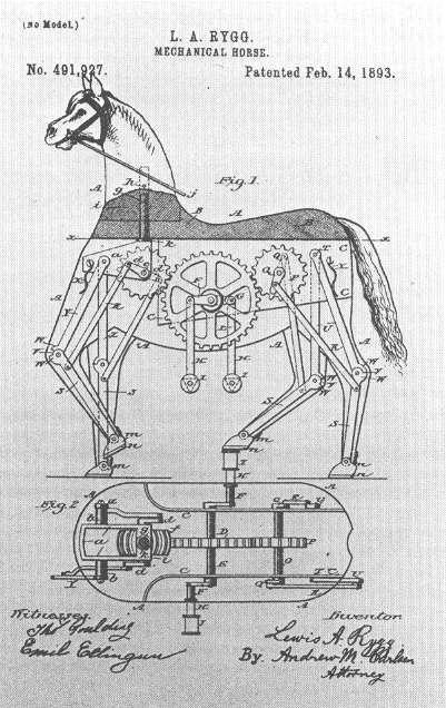 Ya en el siglo XIX, el mismo diseño sería propuesto otra vez por Lewis A. Rygg en la patente número 491927 fechada en febrero de 1893. En esta ocasión, la forma animal sería la de un caballo: