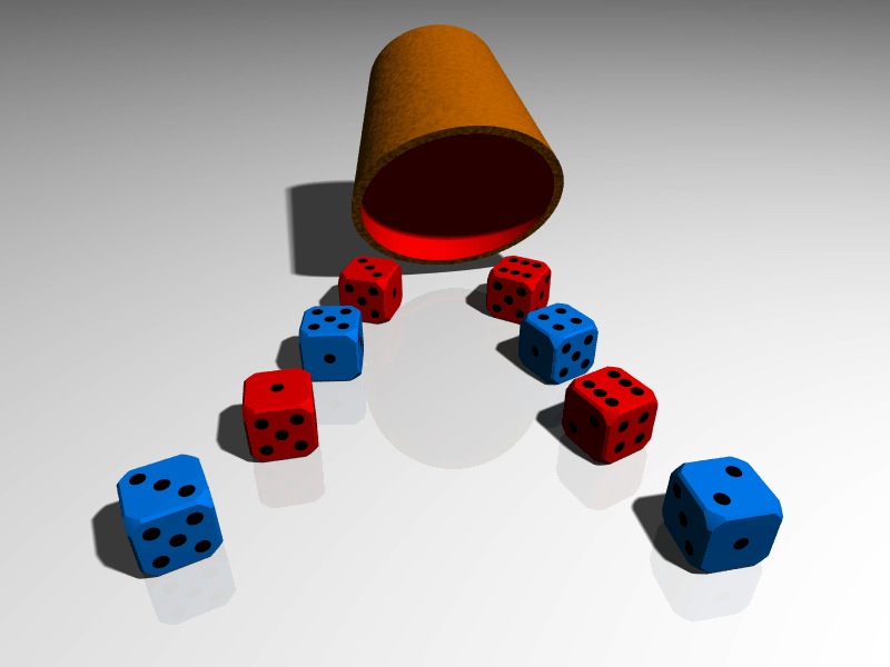 | Metáfora de los «dados mágicos». Los colores iguales en los dos conjuntos de dados simbolizan el entrelazamiento de las dos distribuciones de probabilidad (fuente, QUEST) |
