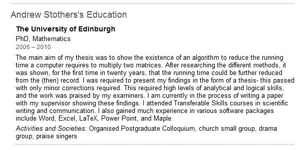 «Investigé mejoras en el tiempo de multiplicar matrices […] y con esa experiencia mejoré mis habilidades con Word, Excel, …»