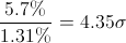 PP=40.66% => 5.56σ => 99.99999730225 %