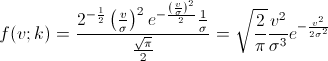 Sustituyendo el valor de la función Gamma Γ(k/2) para k=3 e introduciendo la varianza σ2 de las Gaussianas mediante el cambio de variables x=v/σ, tenemos: