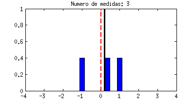 Si lo de «sigue una distribución Gaussiana» te parece chino mandarín, esta animación te ayudará a entender qué quiere decir. Imagina que mides miles de resultados de un experimento, el que sea, que contiene una parte de azar, o de incertidumbre o un error. La cuestión es que cada vez te sale un número distinto: un -1, un 2, un -0,5, etc. La línea negra del dibujo representa cada uno de esos resultados, por eso va dando saltos al azar. Para hacernos una idea de cuántas veces sale «casi -1», o «casi 2», etc. vamos contando las veces que el resultado cae en una serie de divisiones horizontales, y eso son las barras azules que crecen cada vez que la línea negra las toca. La forma que acaban teniendo las barras azules se llama función densidad de probabilidad y a pesar de ser algo basado en el azar, siempre acabará teniendo una forma concreta y bien definida para cada experimento. La que ves abajo es precisamente una campana de Gauss, la misma distribución Gaussiana que nos apareció antes.