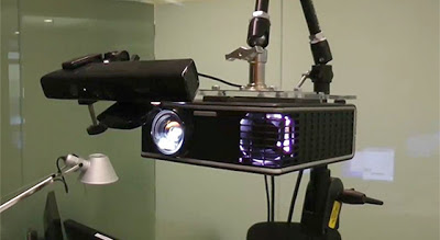 El sistema consiste en un proyector de mesa, combinado con un sistema Kinect para detectar el patrón tridimensional de la habitación y poder así generar las imágenes con la deformación adecuada para conseguir los espectaculares efectos que muestra el vídeo.