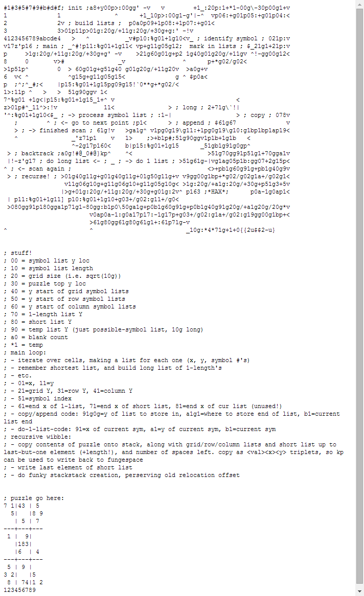 Imprescindible hacer un recorrido por este repositorio de programas escritos en Befunge por la, probablemente, única persona capaz de hacerlo del mundo.